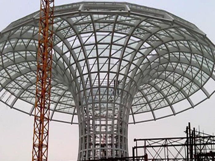 二、球形网架结构因其结构新颖,受力合理,自重轻、用钢量低等优点。如大型体育场馆球形安徽螺栓球网架、公共场馆球形网架、电厂安徽螺栓球网架、水泥工业球形网架、仓储物流球形网架、安徽干煤棚工业球形网架、安徽收费站安徽加油站球形网架、展览中心、影剧院、商场、航站楼、候车厅、工厂安徽车间、仓库、电视塔等球形螺栓球节点网架。国内球形网架结构主要分为:安徽焊接球节点网架及螺栓球节点网架两种。螺栓球节点网架其构件工厂内加工量较大,现场安装便捷,适用于现场工期紧,安徽施工条件、用电量受制约,网架形状复杂、安徽杆件定位困难的异形结构。螺栓球节点球形网架系统基本由安徽杆件、螺栓球、支撑支座等组成。按照节点形式可分为交叉安徽桁架体系、四角锥体系、三角锥体系等。支撑方式多为固定支座支撑。对于大面积、大跨度及有特殊受力或伸缩要求的网架结构可采用橡胶支座、滑移支座、球铰支座等支撑形式,以满足结构自身的受力稳定、均衡,便于内力释放等设计要求。